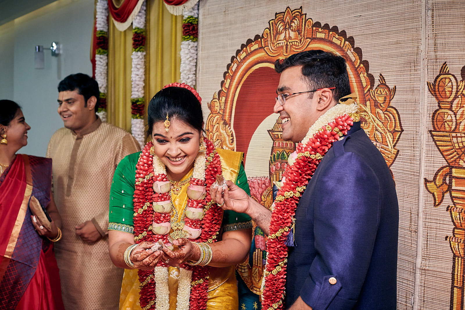 Close Family Engagements are always a great place to be, you've got a very close family and friends with all known to each other and the showing so much joy and happiness around. Just loved to be a part one such engagement of Reshma and Jayakumar